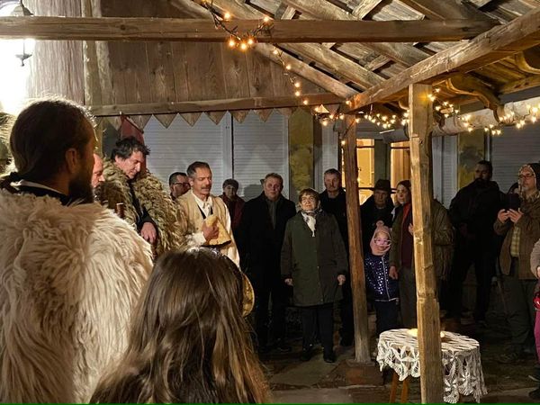 Zentay Ákos szervezésében helyi regölős barátainkon kívül a mostani estén a békéscsabai Born Gergely és társai is ellátogattak hozzánk, akik hosszú évek óta ápolják a regölés ősi szokását. Külön öröm, hogy az esten öt gyerek is szerepelt. A magyar néphagyomány jelképrendszerével foglalkozó, művelődéstörténetet is oktató Gergely egy mindannyiunk számára emlékezetes, ősi szakrális elemekkel gazdagított eseményt celebrált, kiegészítve a regölés történetének, jelentőségének elmesélésével.