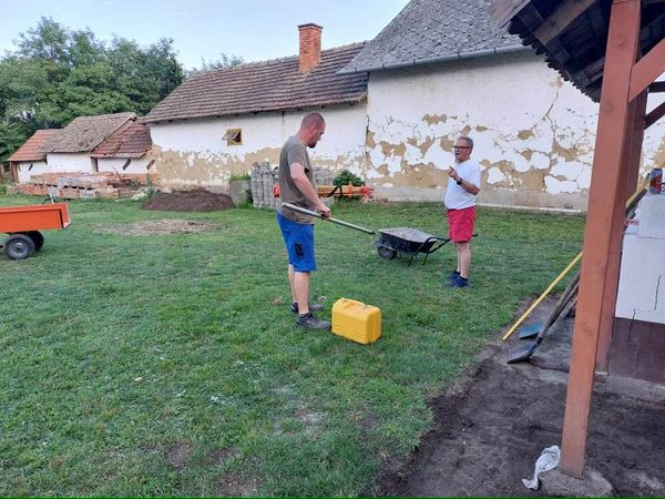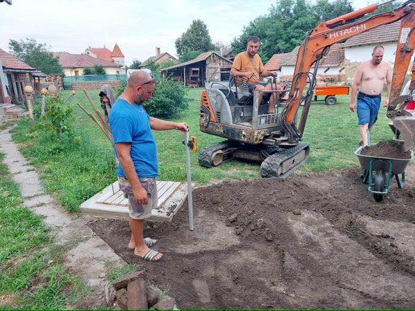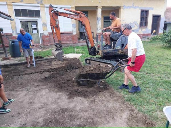 Kezdődhet az ereszalja tégla burkolása, elkészült a “tükör”, köszönhetően Zubor Imre, Nemes Lajos ,Kis Ferenc, Molnár András, Nagy Sándor és Nádudvari Lajos közös önkéntes munkájának, aki utóbbi árokásó markolójával érkezett és segítette a profi eredményt. Közben a kerti és utcai fűnyírás is megtörtént. Nagy köszönet a szervezőnek és minden kedves résztvevőnek!