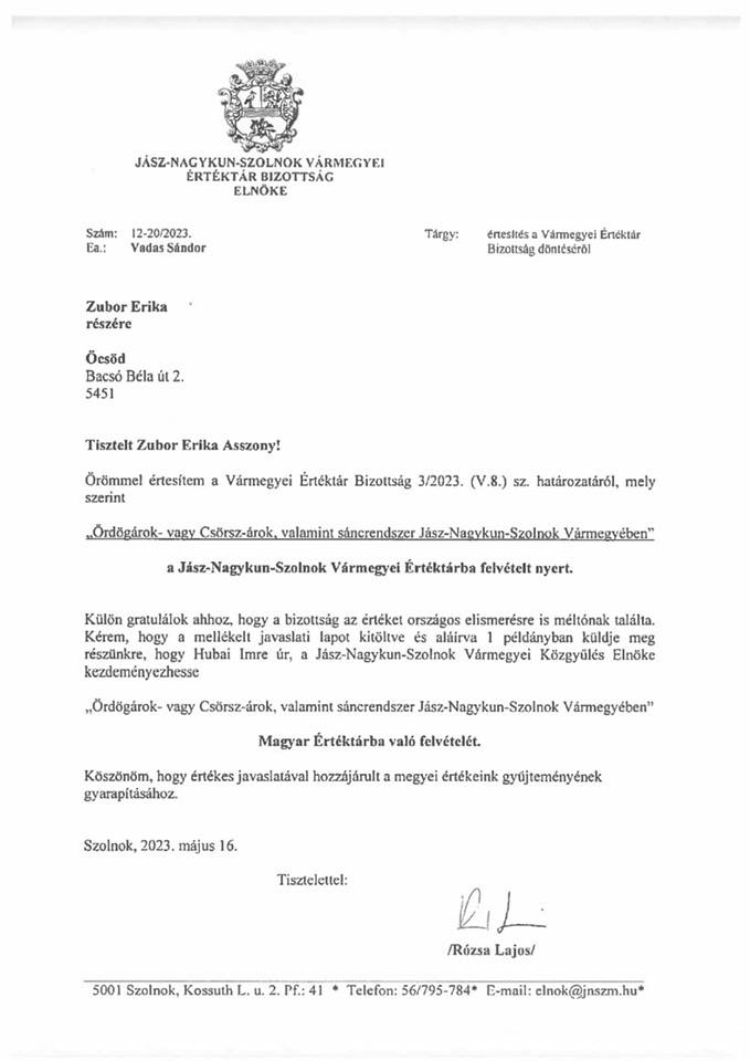 Örömmel tesszük közé JNSz Vármegye Értéktár Bizottságának értesítését arról a napokban érkezett döntésről, hogy a felterjesztett Ördögárok – Csörszárok védősánc rendszer felvételt nyert a Vármegye értéktárába. Egy hete a Karcagon tartott Vármegyei Értéktár Napon már igen jó érzés volt öcsödiként hallani és megtudni a hírt, hogy az elsők között egyike vagyunk a Vármegye újonnan felvett […]